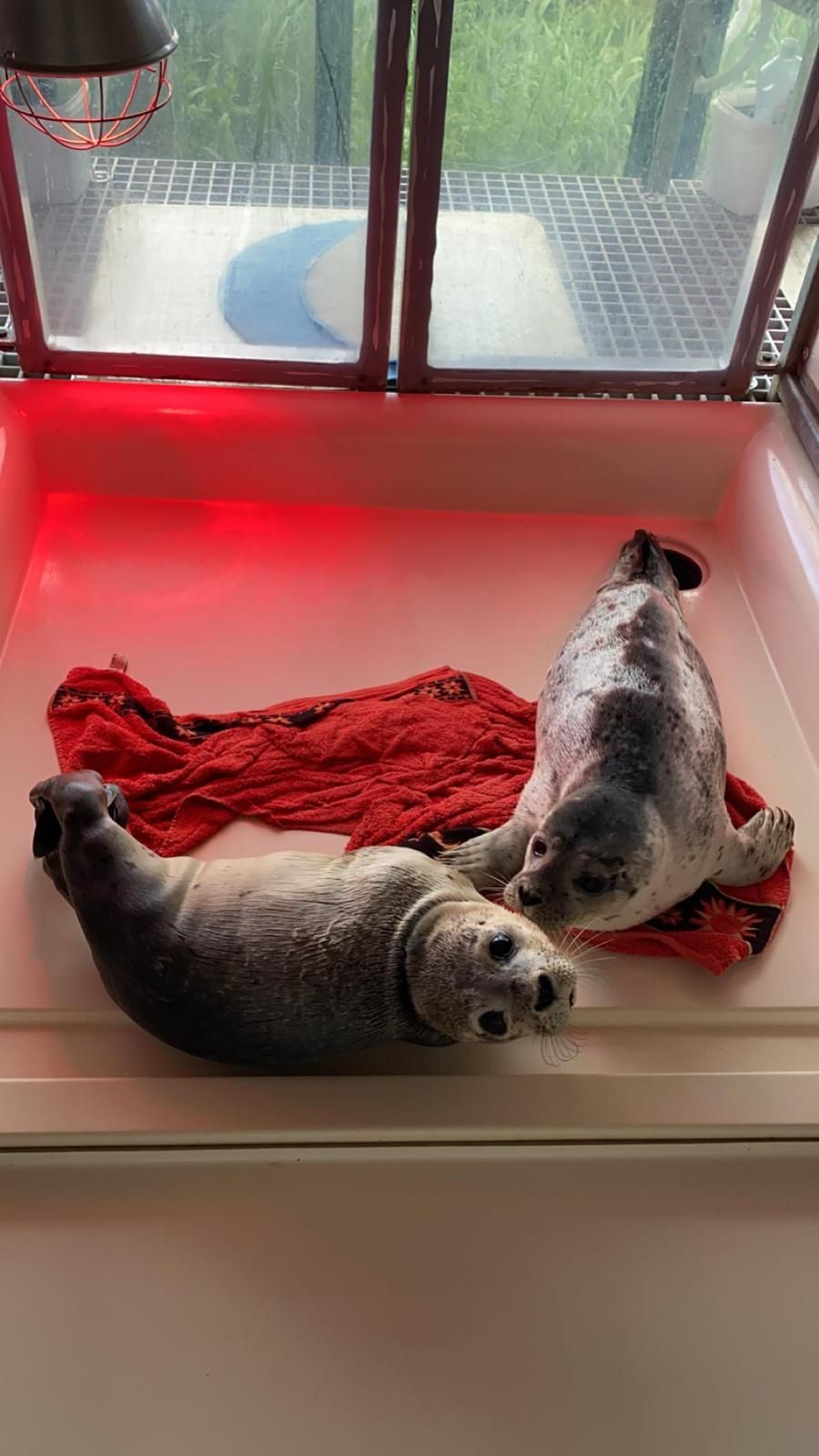 In einer gemeinsamen Anstrengung mit der DLRG und dem Tierarzt Dr. David Ebmer, der seine Doktorarbeit bei uns im Robbenzentrum verfasst hat, konnten wir die beiden Tiere retten und sicher ins Robbenzentrum bringen. Einer der jungen Seehunde ist übergewichtig, der andere hat einen entzündeten Nabel. Doch sie sind jetzt in guter Gesellschaft - bereits fünf andere Heuler wurden von uns in vorangegangenen Rettungsaktionen geborgen.